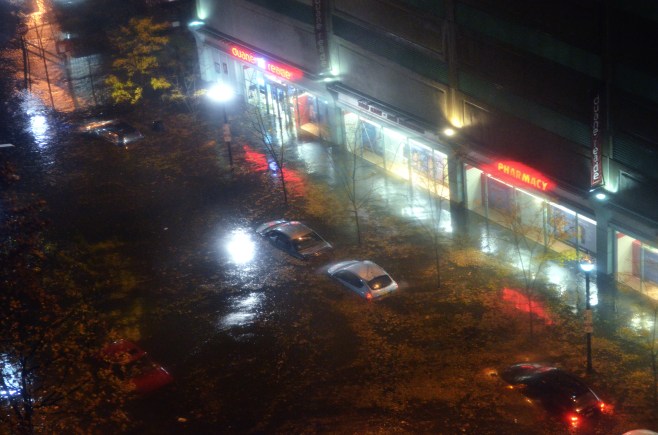 Cars slowly vanished into the swirling waters